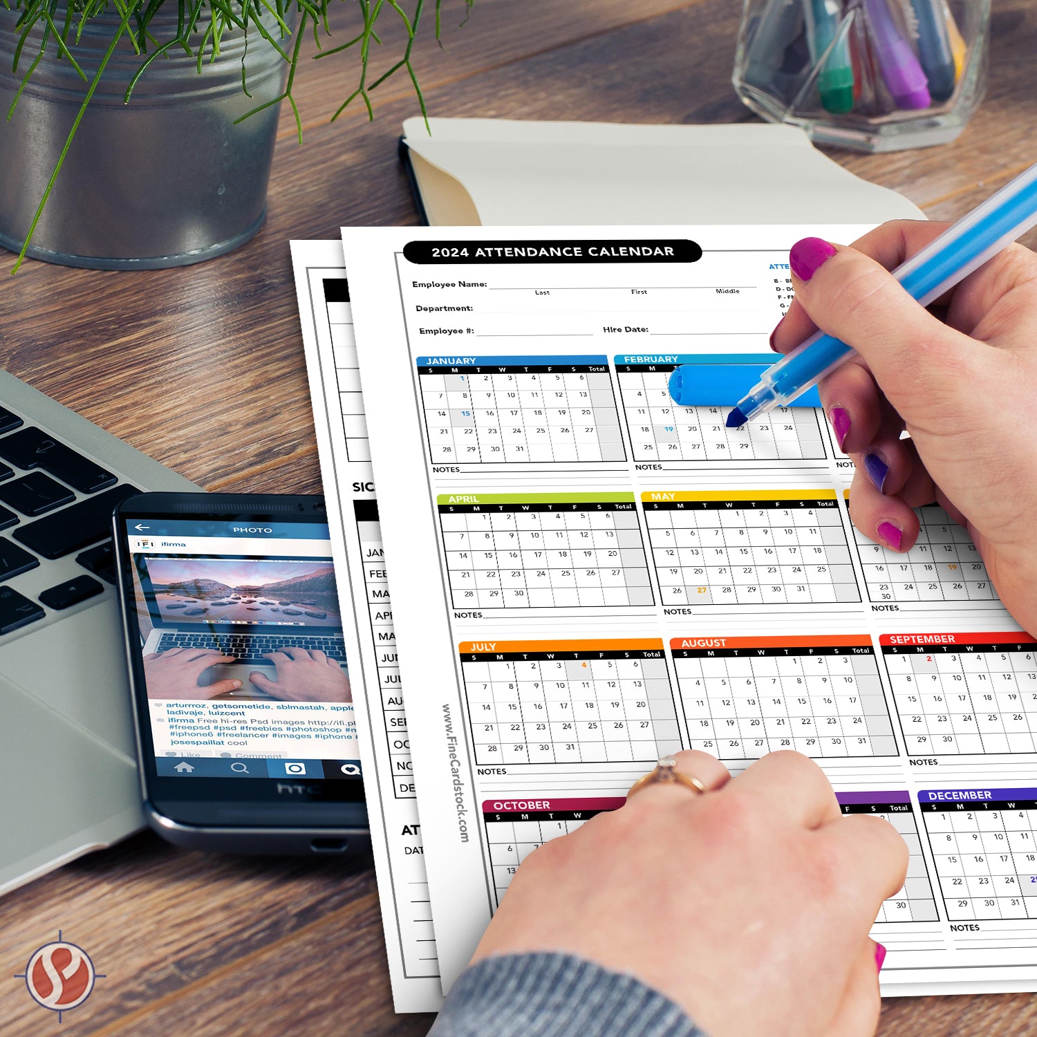 Source : www.etsy.com2024 Attendance Calendar Card Stock Paper โ Great Employee Work Tracke